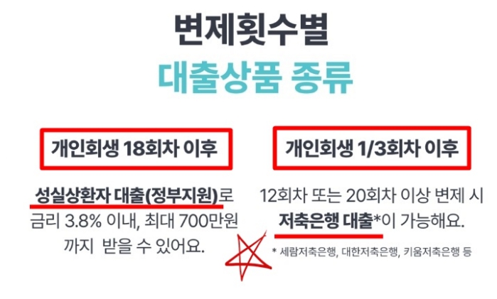 개인회생 변제 18회차 이후가 된다면 정부지원 상품인 성실 상환자 대출이 가장 유리합니다.