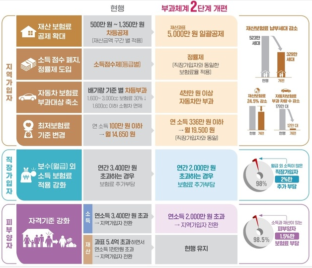2단계 개편은 건강보험료 부과가 재산에서 소득을 중심으로 바뀝니다.