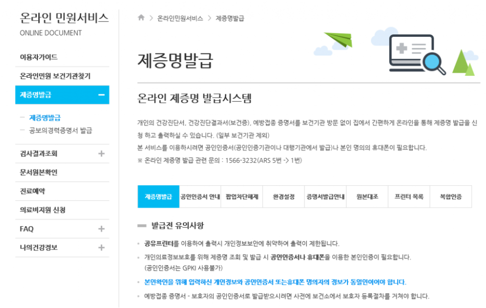 공인인증서 또는 휴대폰만 있으시면 인터넷으로 발급이 가능합니다.