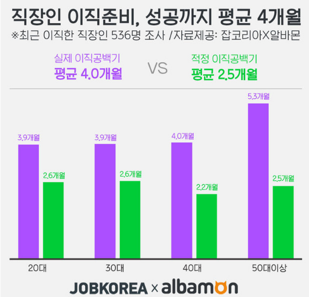 재직 중 이직준비를 통해 이직 공백기를 줄이는 것을 선호하는 경우도 있으나 현실적으로 쉽지 않은 편이다. 퇴사한 후 지원할 기업과 업계의 분석, 본인의 역량강화 등을 충분한 이직준비를 통해 신중하게 재취업 활동을 하는 것이 더 바람직하다.