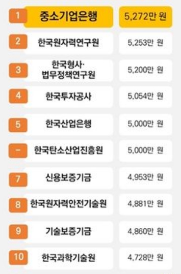 우리나라 공기업과 평균연봉 vs 공공기관 연봉 순위