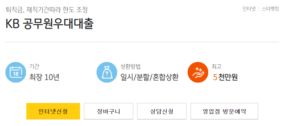 KB국민은행 공무원 신용대출,한도 및 신청 기준 자격