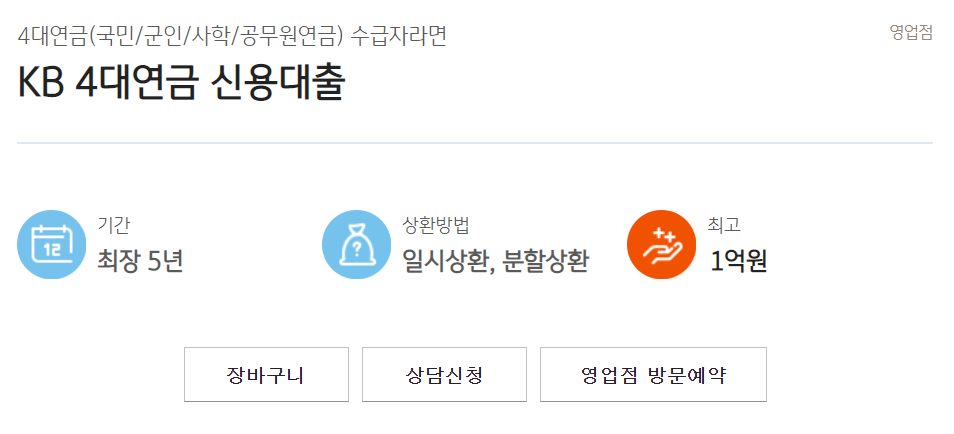 4대연금(국민연금, 군인연금, 공무원연금, 사학연금) 중 어느 하나를 매월(1회 이상) 국민은행 계좌를 통해 수령하는 고객으로 개인신용평가시스템(CSS)에 의해 대출적격자로 판정된 고객
