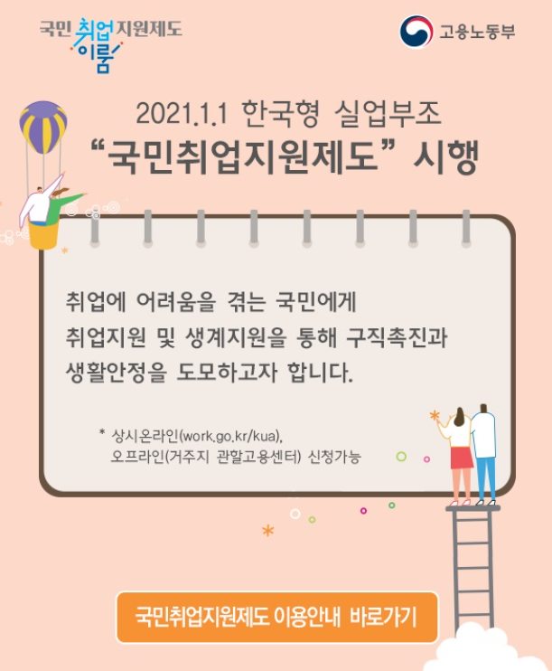- 신청 : 국민취업지원제도 홈페이지(work.go.kr/kua)