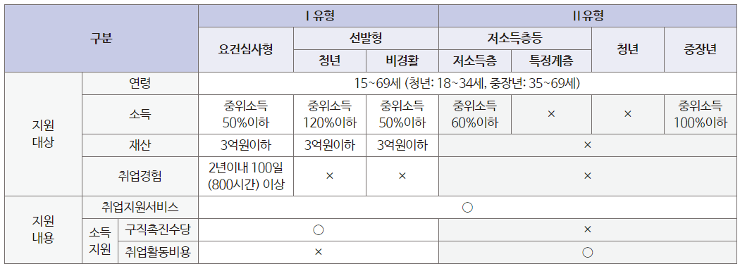 Ⅰ유형(저소득층)은 취업지원 서비스와 소득지원(구직촉진수당)을 제공,