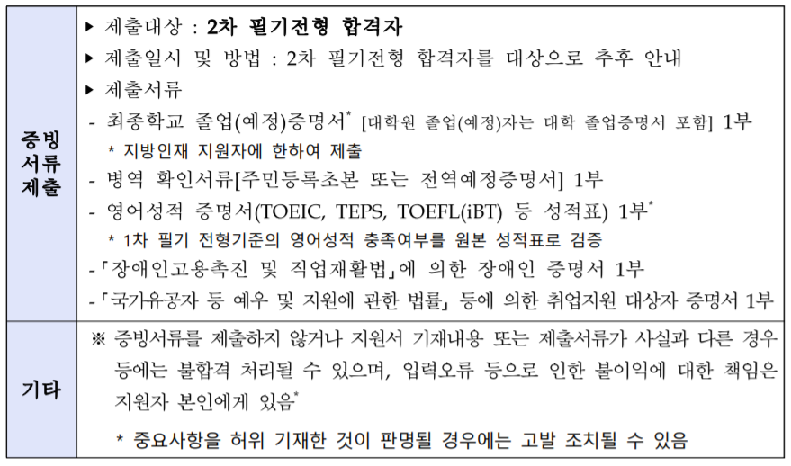 또한 이후 증빙서류 검증 과정에서 중요사항 허위 기재 확인시 불합격 처리될 수 있음