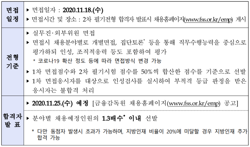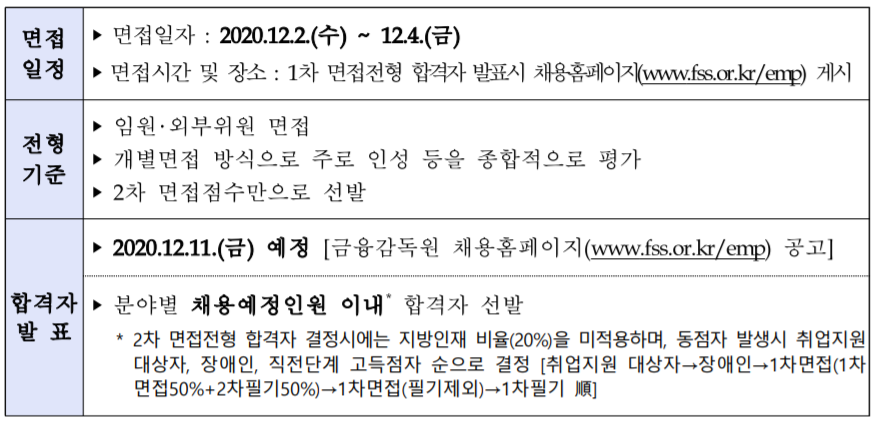 신체검사 및 신원조사 : 세부일정 등은 2차 면접전형 합격자 발표시 채용 홈페이지(www.fss.or.kr/emp) 게시