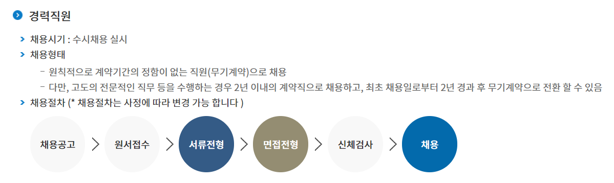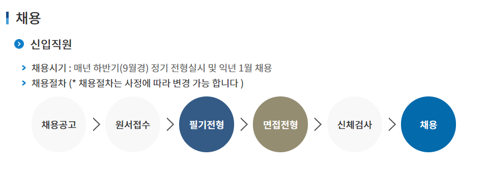 ⇒ 2차 면접전형 ⇒ 신체검사 및 신원조사 ⇒ 최종합격자 발표