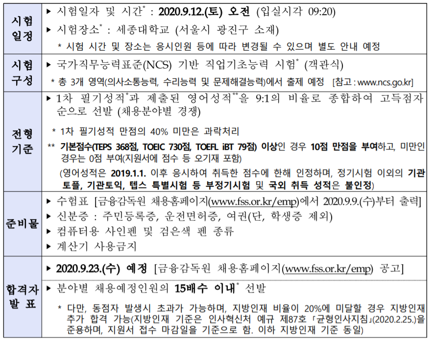 2021년도 금융감독원 종합직원(5급) 채용공고