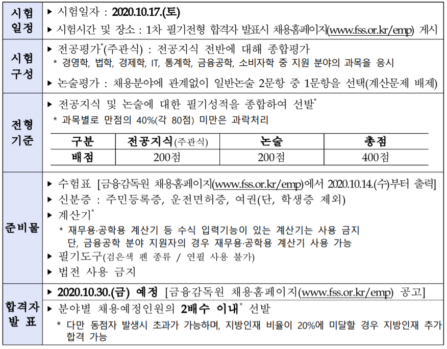 ‣ 접수방법 : 인터넷 접수 [금융감독원 채용홈페이지(www.fss.or.kr/emp)에서 입력]