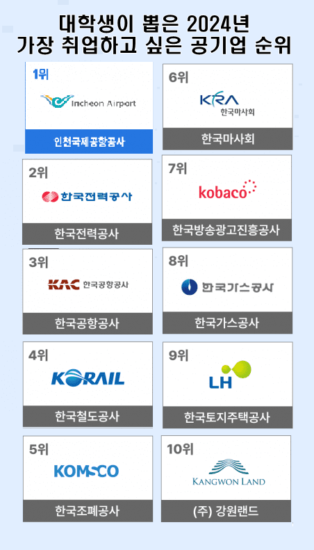 대학생이 뽑은 가장 취업하고 싶은 공기업 순위
