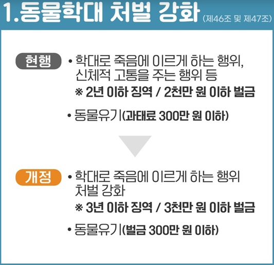1) 동물학대 처벌 강화(제46조 및 제4조)