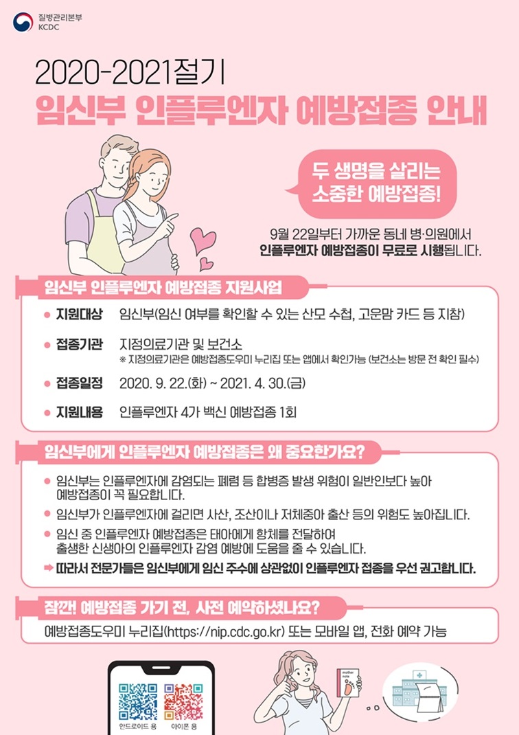 ▶임신부는 인플루엔자에 감염되는 폐렴 등 합병증 발생 위험이 일반인보다 높아 예방접종이 꼭 필요합니다.