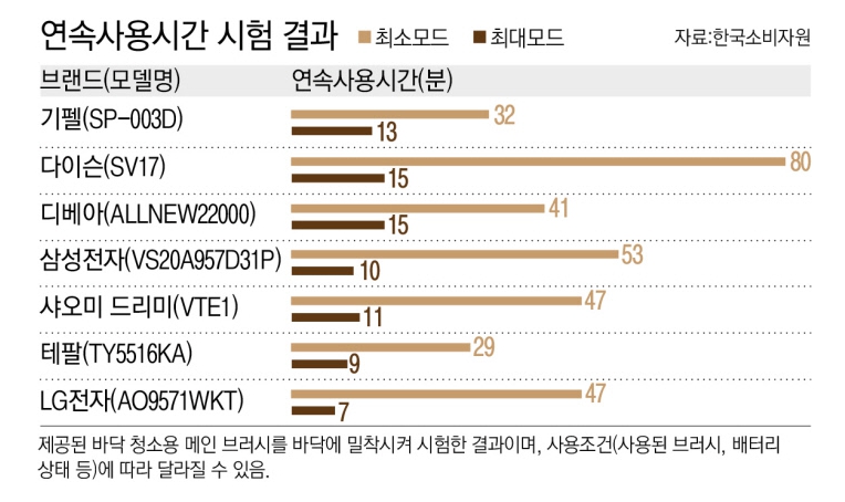 특히 오랜 시간 청소를 해야 한다면 긴 사용 시간을 제공하는 모델을 선택하는 것이 좋다.