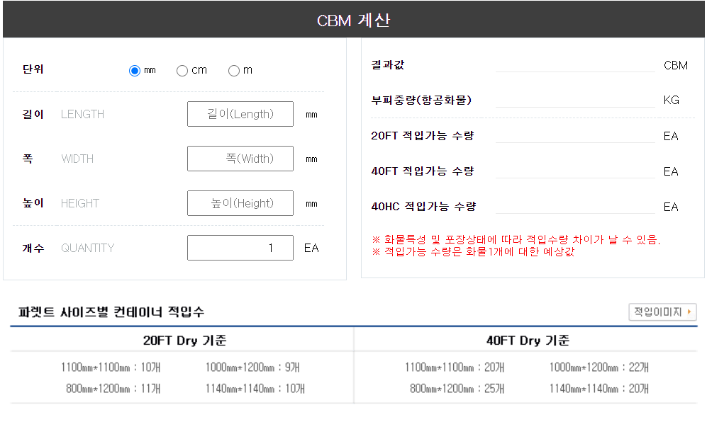 간편 cbm 계산기, 귀찮은 cbm계산을 자동으로 빠르고 쉽게! 컨테이너에 몇박스가 들어가는지 자동으로 계산!