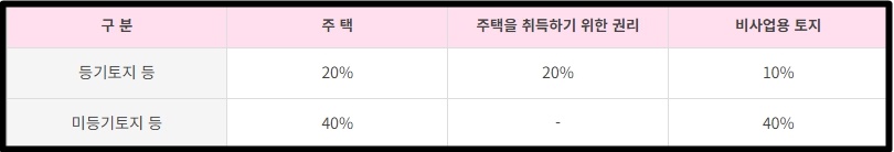 토지 등 양도소득에 대한 법인세율은 다음과 같다. 이 경우 하나의 자산이 다음의 규정 중 둘 이상에 해당하는 때에는 그 중 가장 높은 세액을 적용합니다.
