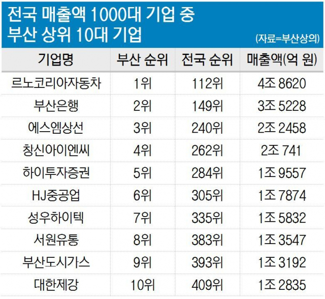 부산에서 매출 1위는 르노코리아자동차입니다.