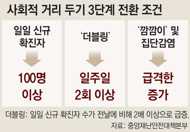 거리 두기 3단계는 최근 2주 내 일일 확진자 수가 100~200명 이상으로 늘어나거나, 일일 확진자가 전일 대비 2배로 증가하는 현상이 1주 2회 이상 발생할 경우 적용 될 수있습니다.