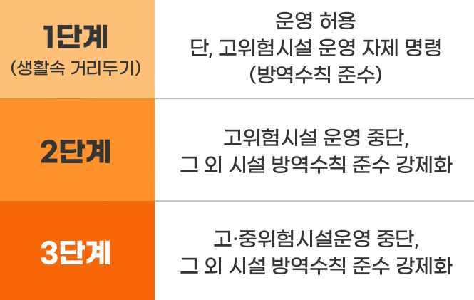 사회적 거리두기 1·2·3단계별로 달라지는 준수 사항