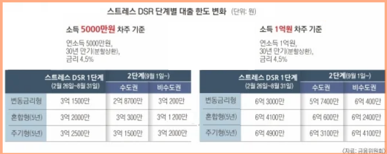 은행과 2금융권 대출금리에 가산금리를 높여 대출한도를 옥죄는 2단계 스트레스 총부채원리금상환비율(DSR)을 시행됩니다.