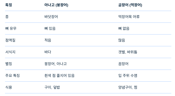 아나고와 곰장어는 둘 다 장어 종류에 속하지만, 몇 가지 중요한 차이점이 있습니다.