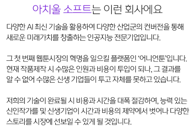 특히 AI 기설을 활용하여 회사의 효율을 증대할 수 있는 다양한 방법을 연구하고 실생활에 적용할 수 있는 기술을 개발하여 AI 기술 분야의 선두 주자가 되는 것이 목표입니다.