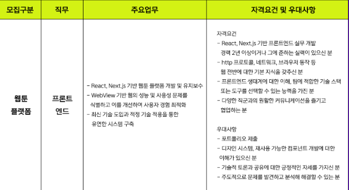 [웹툰 플랫폼] React, Next.js 프론트엔드 개발자 모집을 포스팅 작성 현재 하고 있습니다.