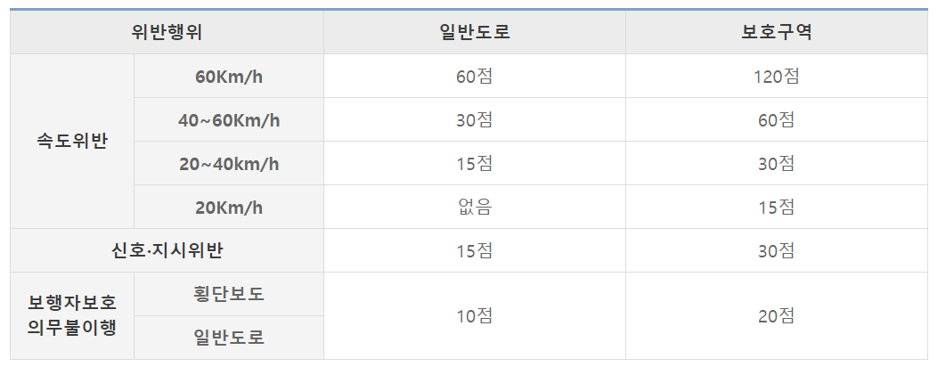 시속 40~60km 위반은 범칙금 12만원과 벌점 60점,