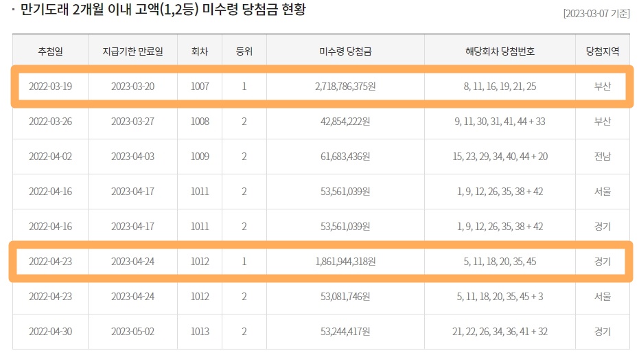 아직까지 미수령으로 보아 당첨금을 찾아 가기가 희박해 보인다.