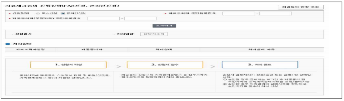 ▶ FAX 또는 온라인으로 자료제공동의 및 동의취소를 신청한 경우 진행상황을 직접 조회 가능