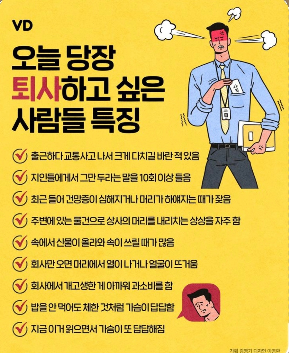 혹시 아래 내용 중 하나라도 해당된다면, 당신도 지금 ‘퇴사병’에 걸린 걸지도 모릅니다.