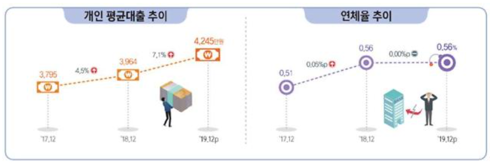 2019년 12월 기준 임금근로자의 평균대출은 4245만원을 감안 하면 부채의 비중이 심각할 정도도 많다는 것이다.
