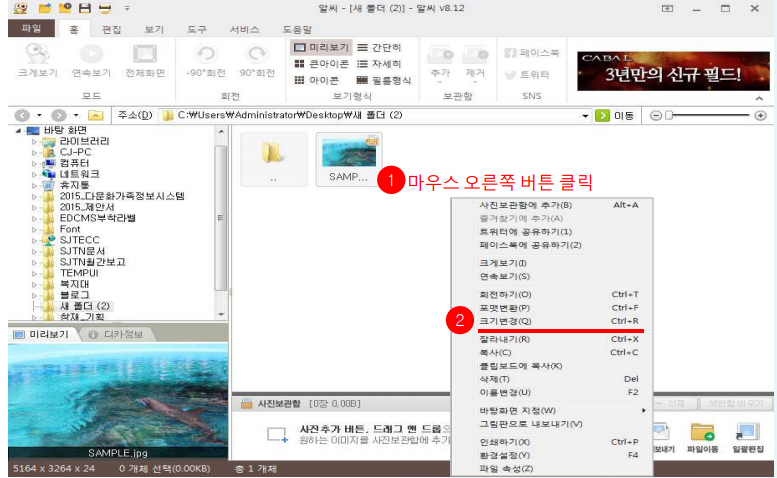 대상이미지에 마우스 오른쪽 버튼을 클릭하여 실행옵션을 로딩합니다.