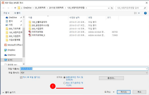 ▶PDF또는 XPS로 게시하기를 실행합니다.