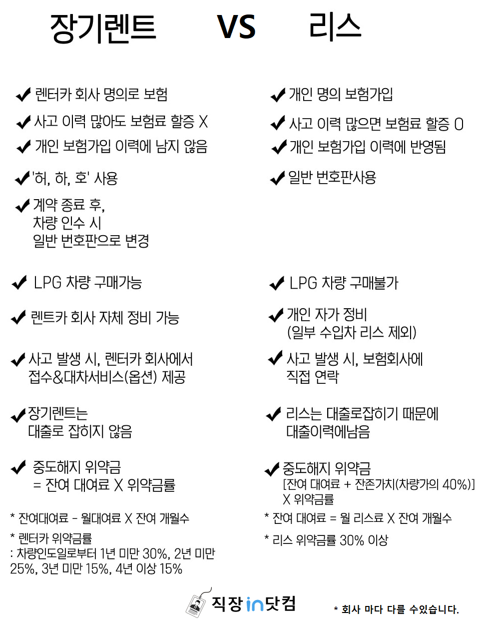 리스 vs 장기렌터카 = 초기비용이 없거나 적다.