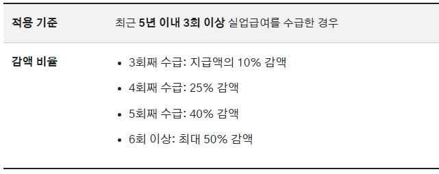 최근 5년 이내 3회 이상 실업급여를 수급한 구직자 대상으로 지급액이 단계적으로 감액