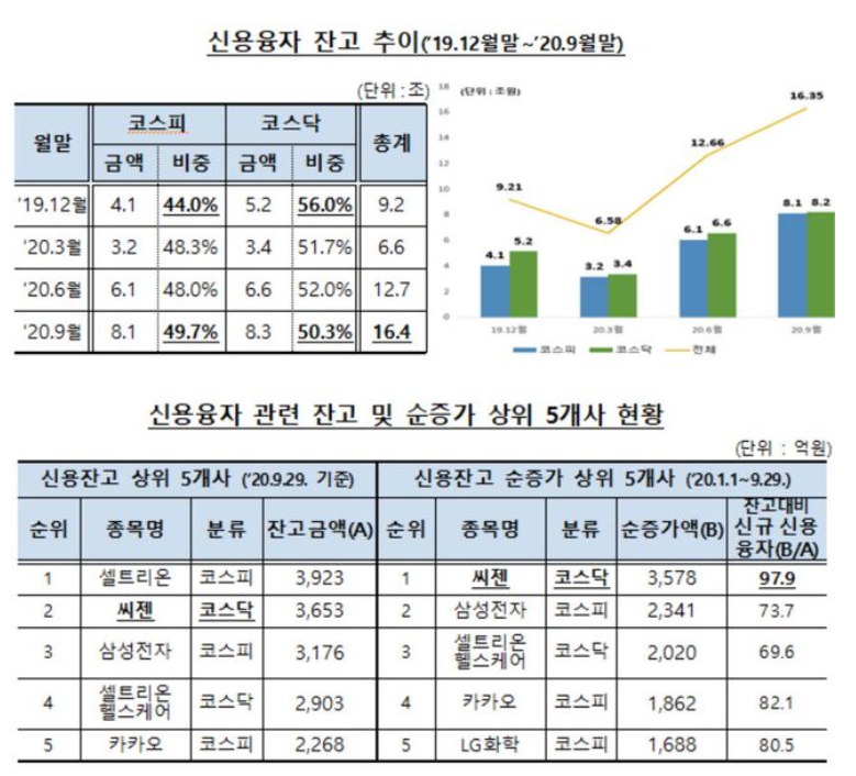 소위 동학개미로 불리는 개인투자자의 ‘빚투’(빚내서 투자) 열풍이 자료를 통해 확인됐다. 신용융자잔고는 전년보다 77.5% 가량 증가했으며 특히 청년층(만 30세 미만)의 증가율이 높았다. 특히 코로나19 수혜주로 불리는 씨젠의 신용잔고 순증가액이 최고치를 기록했다.