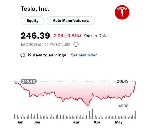 미국 전기차업체 테슬라 주가 올 상반기에는 지지부진했습니다.