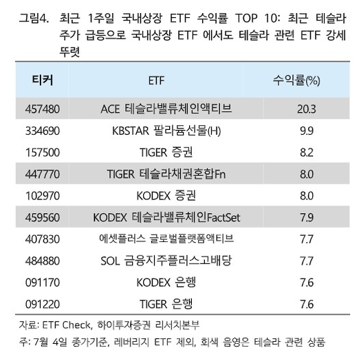 테슬라를 편입한 국내 상장지수펀드(ETF) 수익률 상승세