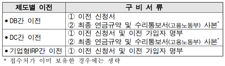 아울러 DB 간 이전이나 DC 간 이전은 연금규약에 열거된 금융회사로 이전해야 한다.