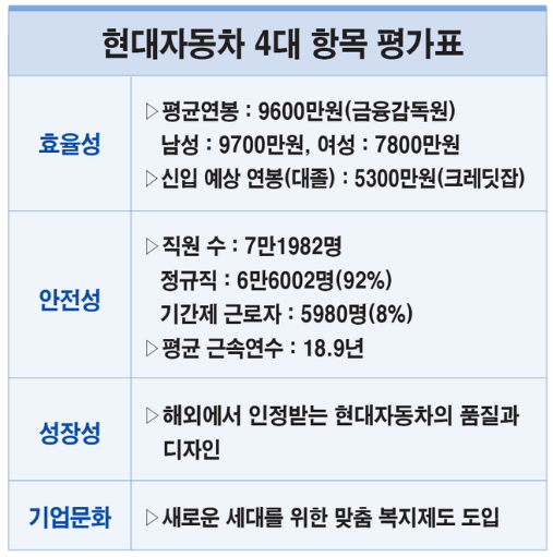 금융감독원에 공시된 2021년 사업보고서을 보면 현대자동차의 평균 연봉은 9600만원이다.