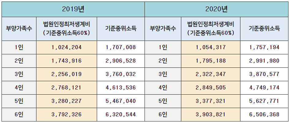 2020년 부양가족수 최저생계비 및 중위소득 및 생계‧의료급여 선정기준과 최저보장수준 확인해 보세요