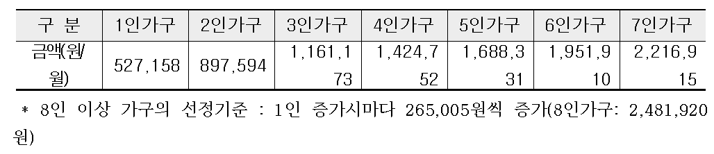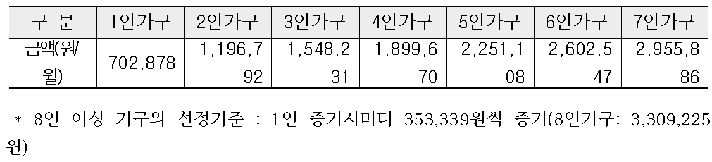 국민이 건강하고 문화적인 생활을 유지하기 위해 쓰는 최소한의 비용이다.