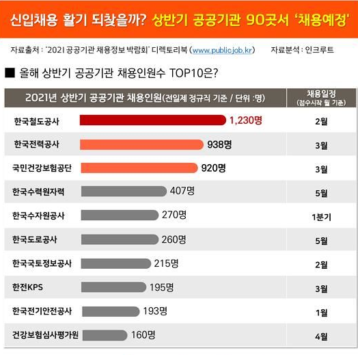 2021 공공기관 채용정보 박람회' 자료에 따르면 이번 박람회에 참여한 공기업 31곳의 올해 채용 예정 인원은 이날 현재 총 5141명으로 집계됐다.