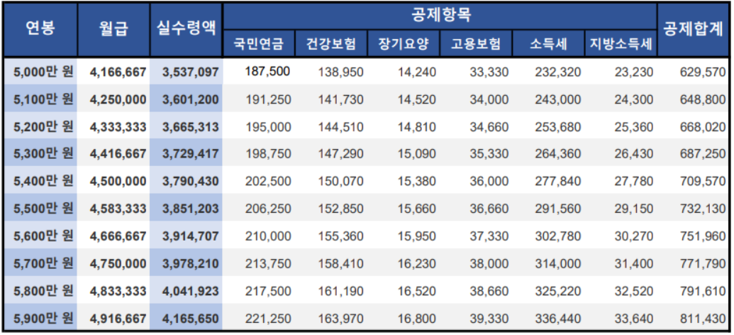 [2021년 연봉 실수령액 5,000만원~5,900만원 산정]