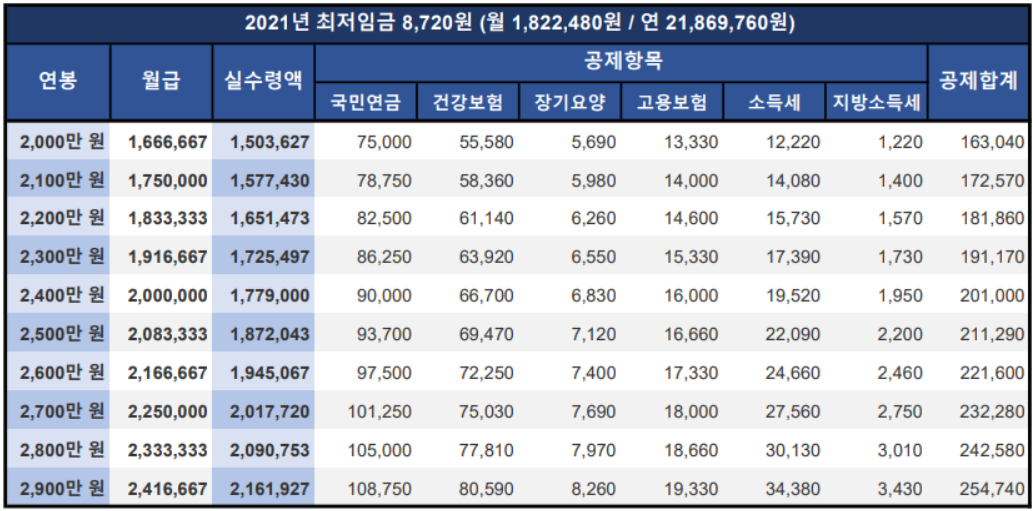 [2021년 연봉 실수령액 2,000만원~2,900만원 산정]