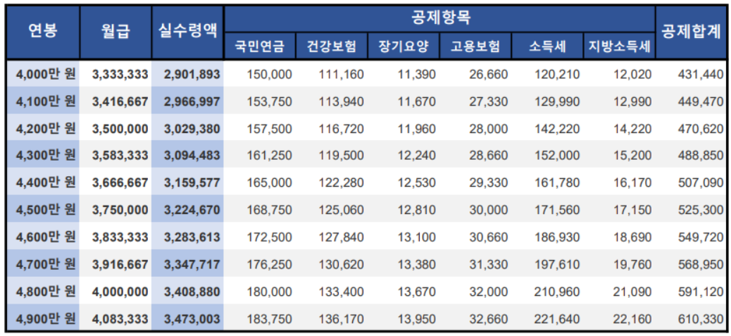 [2021년 연봉 실수령액 4,000만원~4,900만원 산정]