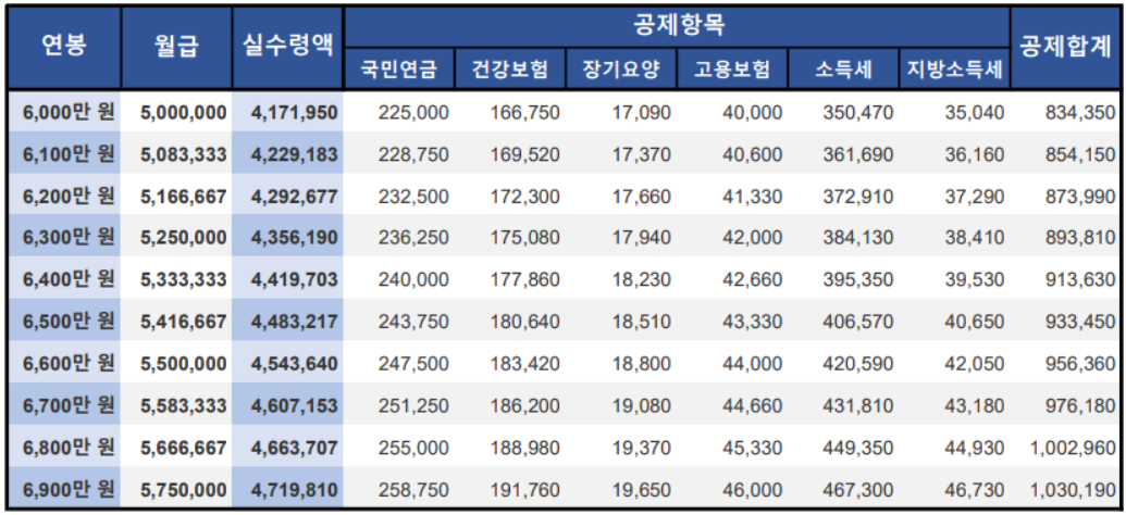 [2021년 연봉 실수령액 6,000만원~6,900만원 산정]