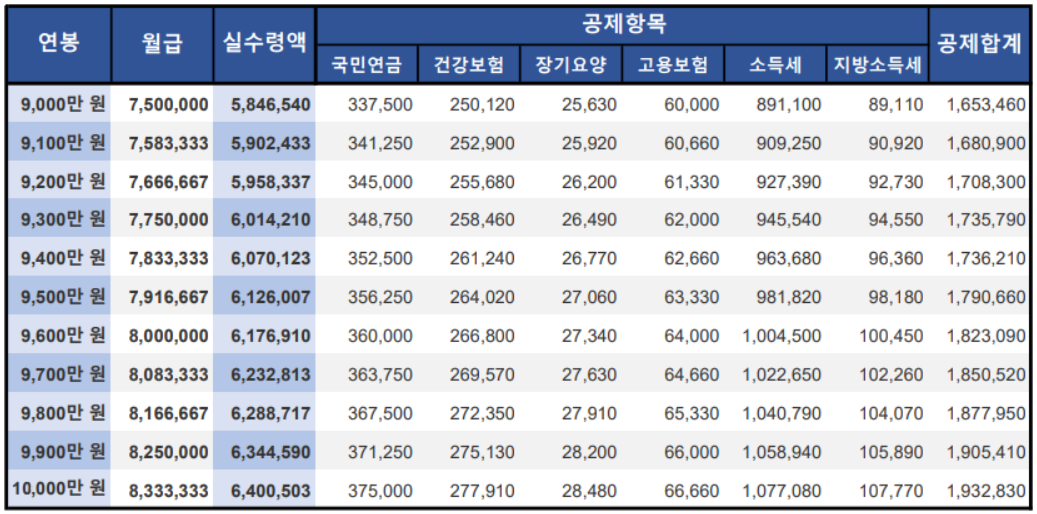 [2021년 연봉 실수령액 9,000만원~10,000만원 산정]