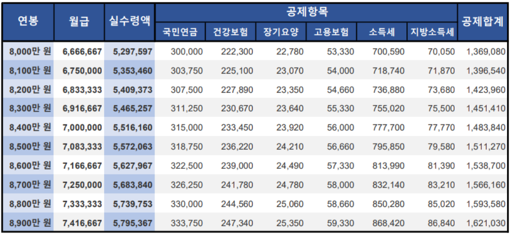 [2021년 연봉 실수령액 8,000만원~8,900만원 산정]